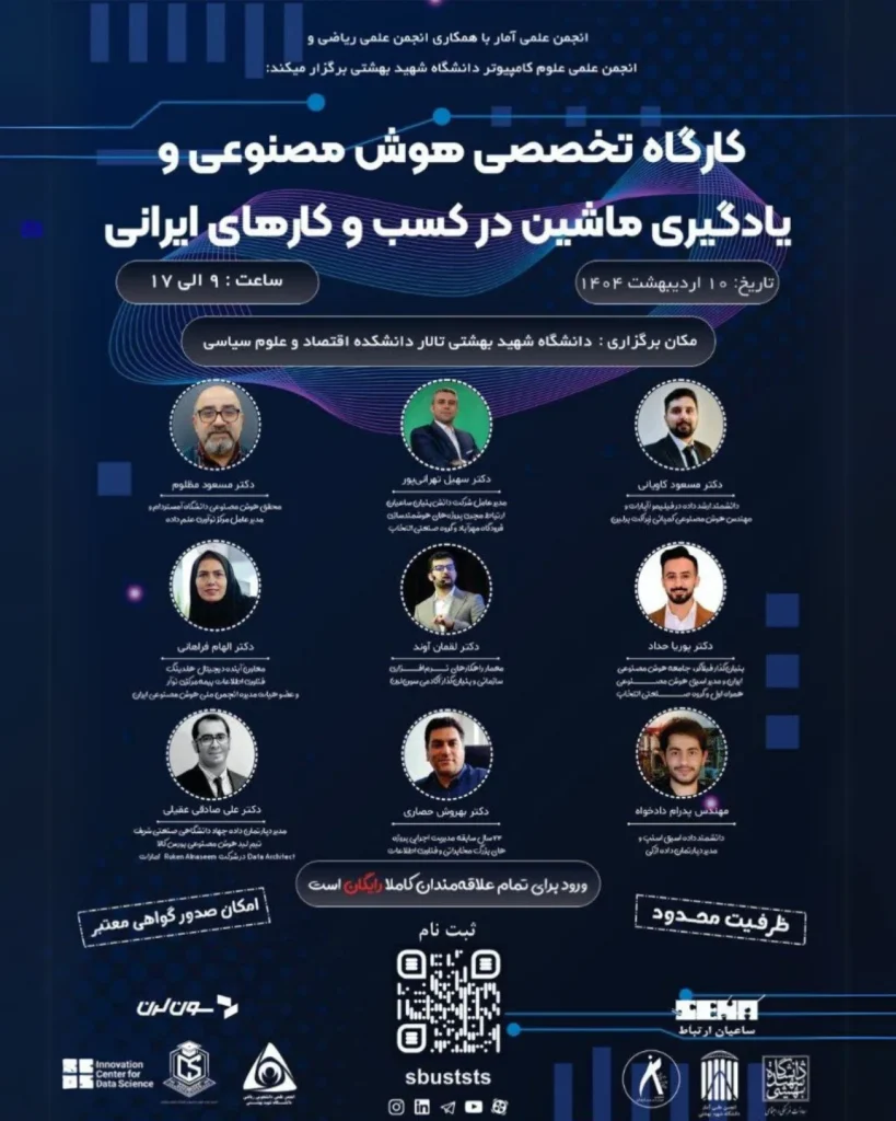دانشگاه شهید بهشتی روز چهارشنبه، ۱۰ اردیبهشت ماه ۱۴۰۴، میزبان «رویداد بزرگ هوش مصنوعی و یادگیری ماشین در کسبوکارهای ایرانی» بود. این نشست تخصصی که با هدف بررسی چالشها و فرصتهای بهکارگیری فناوریهای نوین در صنایع داخلی برگزار شد، با استقبال دانشجویان و علاقهمندان این حوزه مواجه گردید.